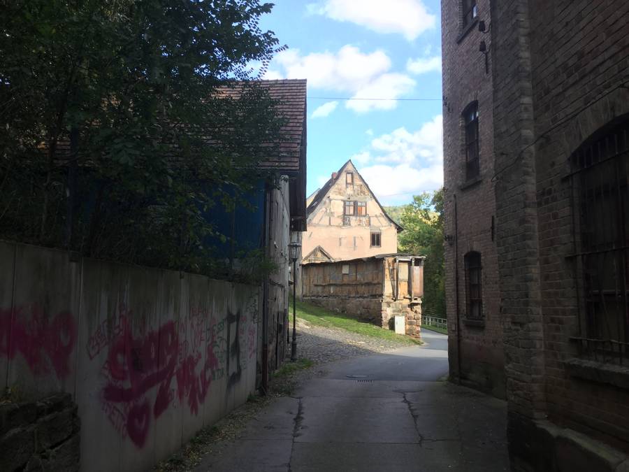 Если уйти от центра в сторону За́ле (тут течет та же река, что в Йене — За́ле), можно найти несколько трэш-фотогеничных кадров.