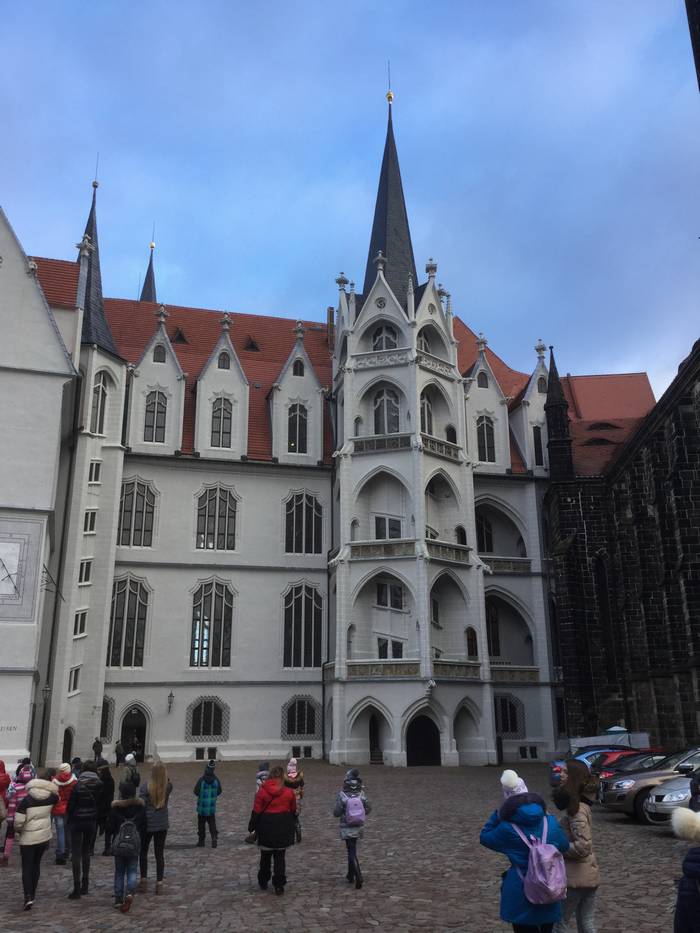 На холме находится крепость (Альбрехьтсбург) и к ней же впритык — собор. Поднимемся туда.