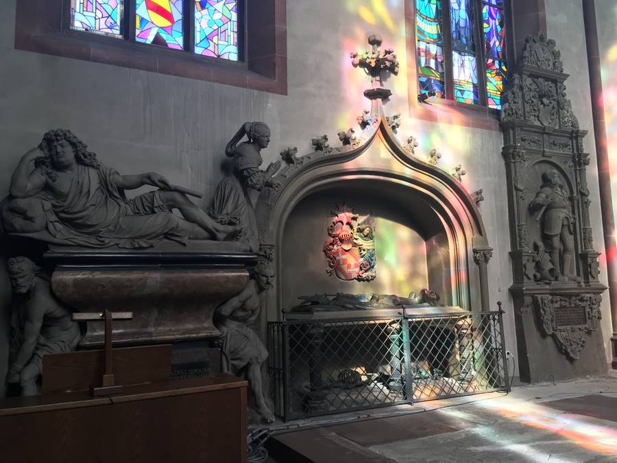 Вот про эту хреновину до потолка слева там целая история. Она была сделана примерно в 1490-м году (охереть! Колумб еще Америку не открыл). Потом собор в 1689 году вместе со всем городом нафиг сгорел, и только эта хреновина каким-то чудом осталась совершенно невредимой.