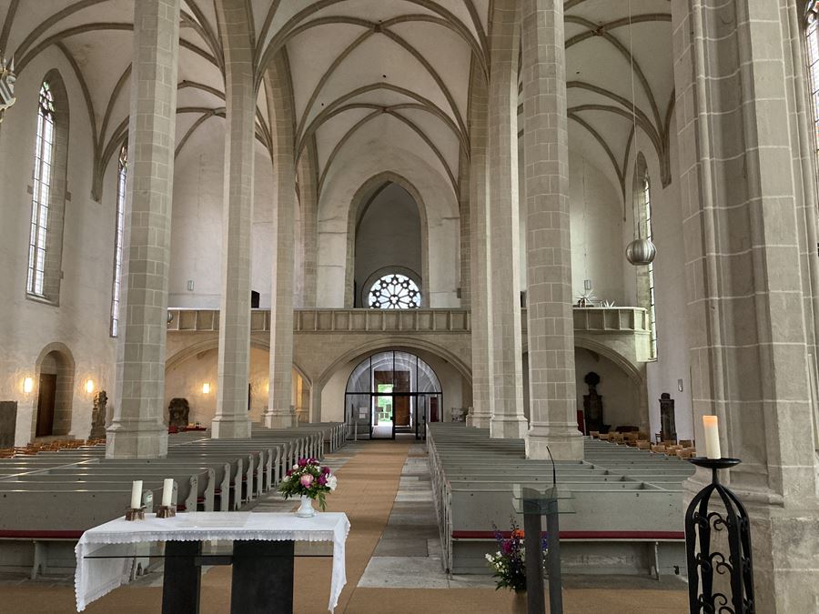 За́мковая капелла чистая и отремонтированная. Она страшно историческая и всё такое, но такой ремонт убивает всю историю. Мне трудно ее воспринимать в историческом разрезе.