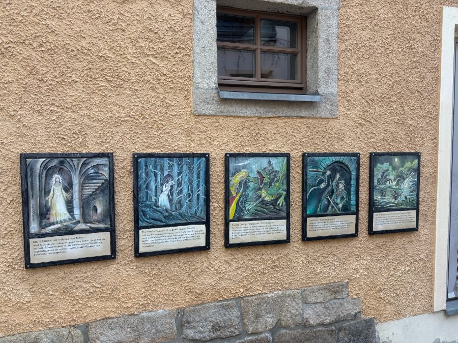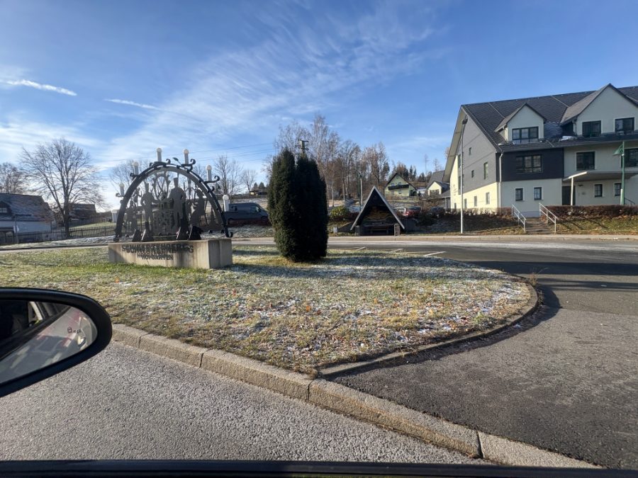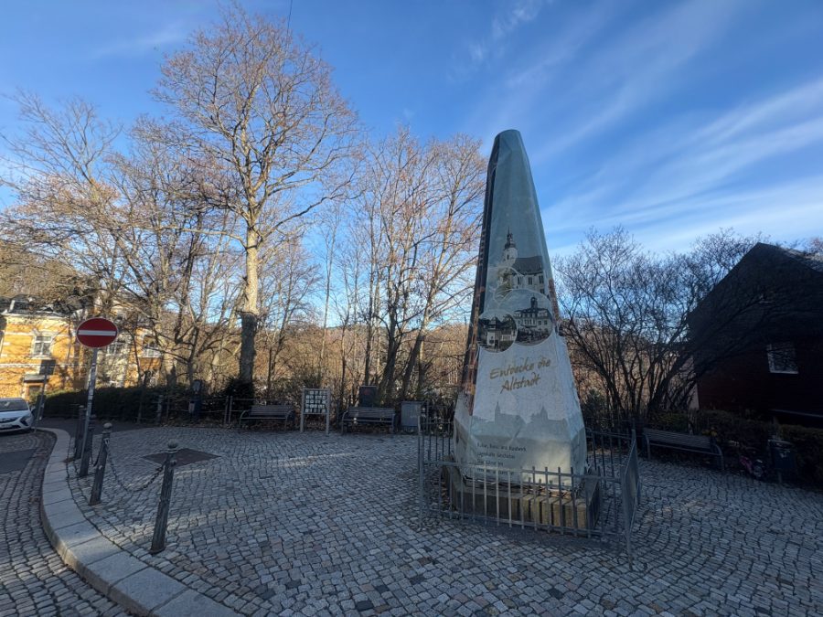 итогах за 2020-й год есть фотографии стены без камней и с камнями). Но тогда был вечер, было темно, и я ничего не увидел от самого города. Только щит на автобане дал мне знание о том, что это «жемчужина рудных гор».